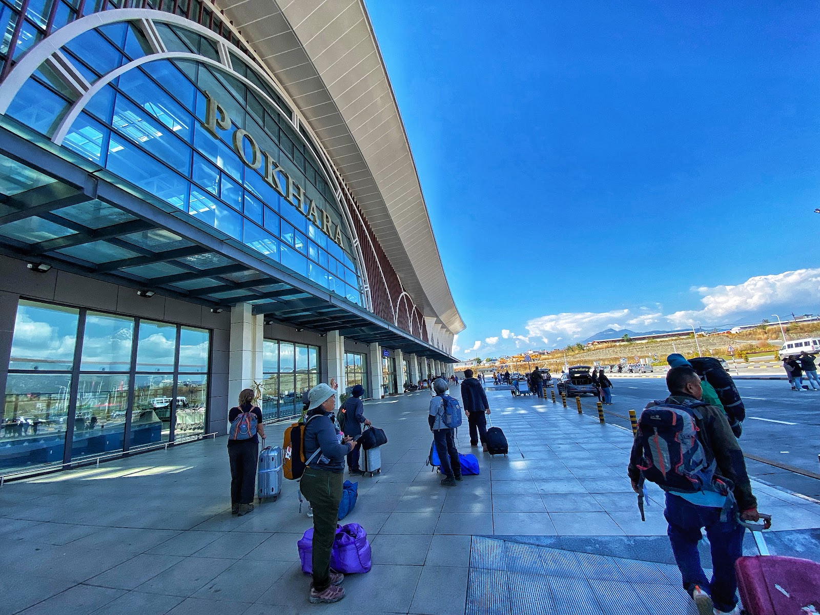 สนามบิน โปขระทันสมัยสวยงาม เห็นว่าจีนสร้างให้ เครื่องภายในประเทศเป็นเครื่องบินใบพัด2 เครื่องยนต์ โฮส์เตทนุ่งผ้าถุงน่ารัก บนเครื่องไม่เสริฟน้ำหรืออาหารแต่เป็นทอฟฟี่สองเม็ดสำหรับอมตินขึ้นลง พร้อมสำลีอุดหู2 ก้อน