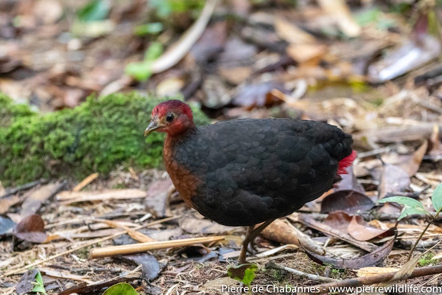 | At last, today’s target appears ! The colors of the male Crimson-headed partridge (Haematortyx sanguiniceps) are so vibrant ! |
